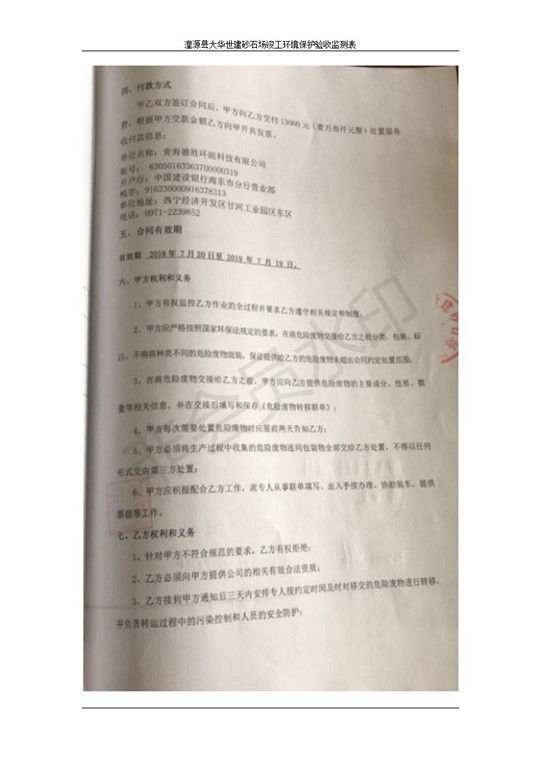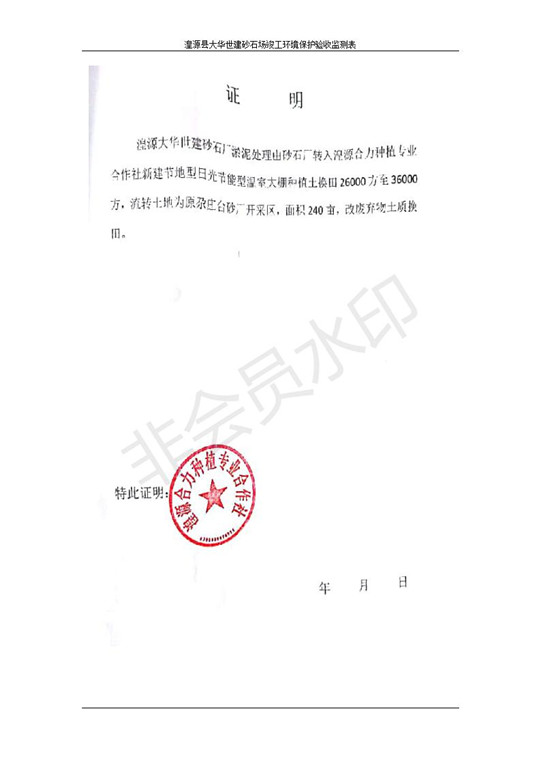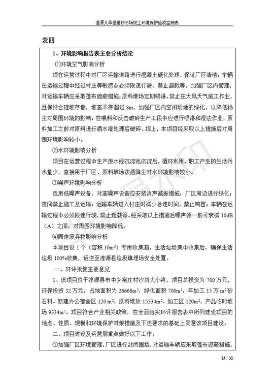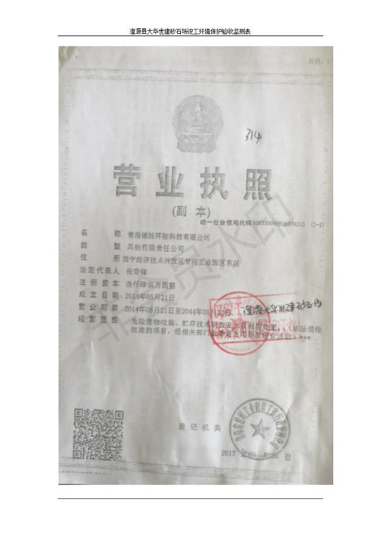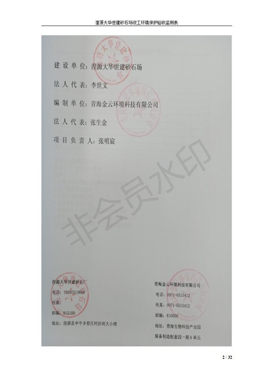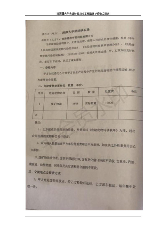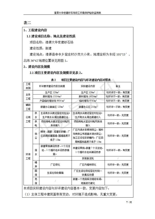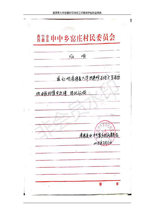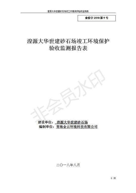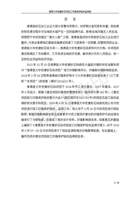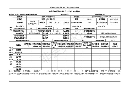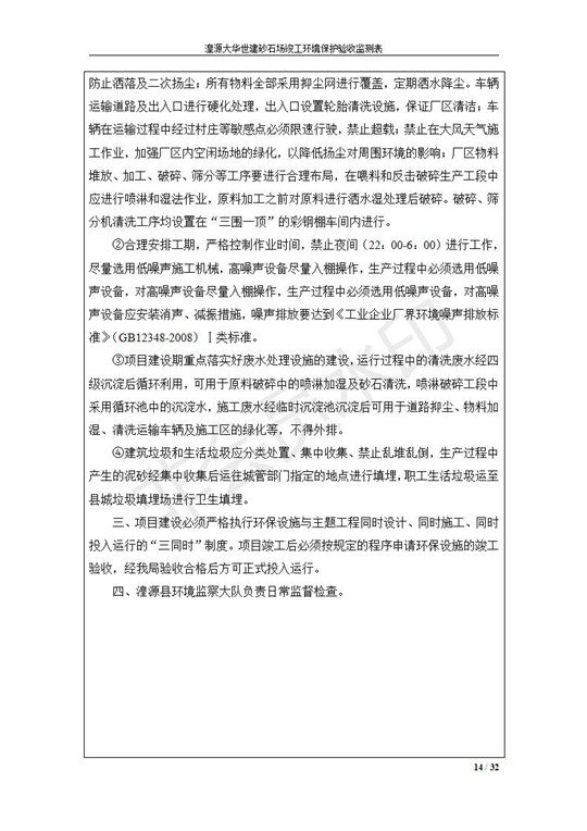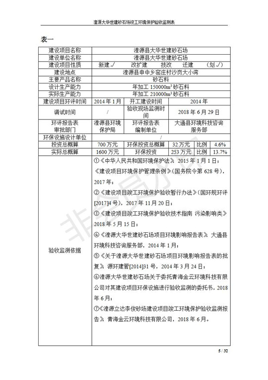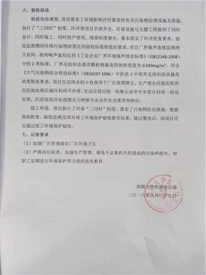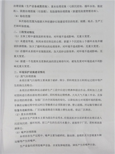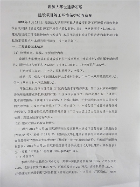 根據(jù)中華人民共和國國務(wù)院令第253號《建設(shè)項目環(huán)境保護管理條例》(中華人民共和國國務(wù)院令第682號《國務(wù)院關(guān)于修改〈建設(shè)項目環(huán)境保護管理條例〉的決定》和《建設(shè)項目竣工環(huán)境保護驗收暫行辦法》,嚴格依照有關(guān)法律法規(guī),建設(shè)項目環(huán)境保護設(shè)施驗收技術(shù)規(guī)范,本項目環(huán)評報告表和環(huán)保審批部門審批意見以及企業(yè)自行驗收相關(guān)要求等對本項目進行驗收,本項目符合環(huán)保驗收條件,可以通過環(huán)保驗收。 湟源大華世建砂石場建設(shè)項目竣工環(huán)境保護驗收意見.