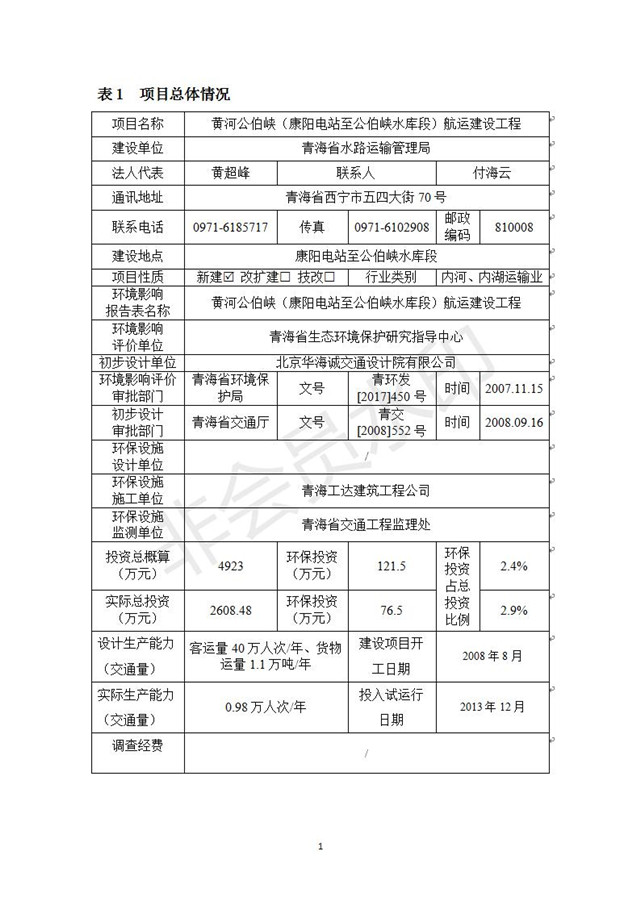 黃河公伯峽(康楊電站至公伯峽水庫段)航運建設(shè)工程竣工環(huán)境保護驗收調(diào)查報告表公示發(fā)布日期:(2018-11-16) 點擊次數(shù):2572 |