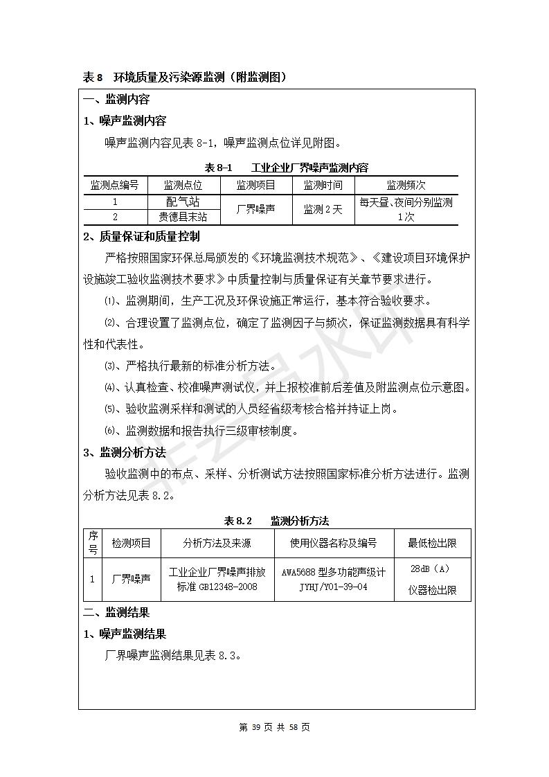 根據(jù)中華人民共和國(guó)務(wù)院令第682號(hào)《國(guó)務(wù)院關(guān)于修改〈建設(shè)項(xiàng)目環(huán)境保護(hù)管理?xiàng)l例〉的決定》和《建設(shè)項(xiàng)目竣工環(huán)境保護(hù)驗(yàn)收暫行辦法》(國(guó)務(wù)院令682號(hào)),貴德縣城輸配管線工程竣工環(huán)境保護(hù)驗(yàn)收內(nèi)容(包括竣工環(huán)境保護(hù)驗(yàn)收調(diào)查表和驗(yàn)收意見(jiàn))公示如下。 一、項(xiàng)目名稱:貴德縣城天然氣輸配工程 二、地點(diǎn):拉雞蓋澀寧蘭復(fù)線22#閥室-貴德縣城 三、建設(shè)單位:貴德華天燃?xì)忾_(kāi)發(fā)有限公司 四、建設(shè)內(nèi)容:貴德縣末站、貴德縣配氣站、貴德縣中壓管網(wǎng)、拉雞蓋22#閥室-貴德縣城長(zhǎng)輸管線 五、公示時(shí)間:二〇一九年三月十一日至二〇一九年四月八日 六、聯(lián)系人:張工 公示期間,對(duì)上述公示內(nèi)容如有異議,請(qǐng)以書(shū)面形式反饋,個(gè)人須署真實(shí)姓名,單位須加蓋公章。