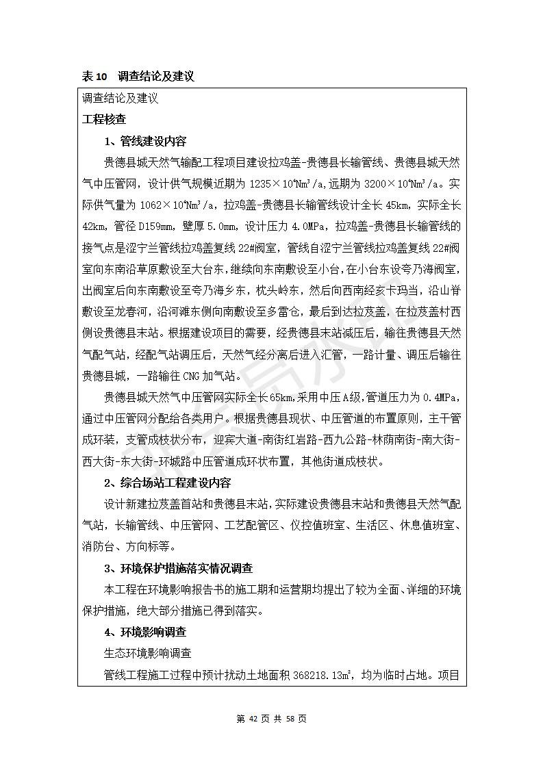 貴德縣城輸配管線工程竣工環(huán)境保護(hù)驗(yàn)收調(diào)查表公示