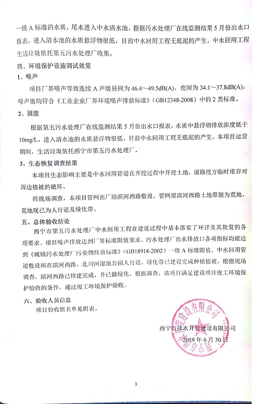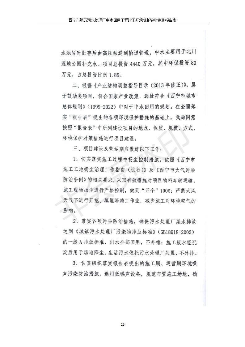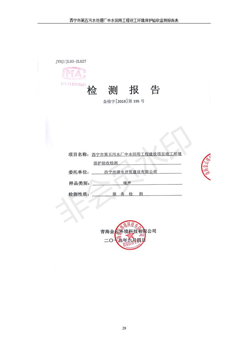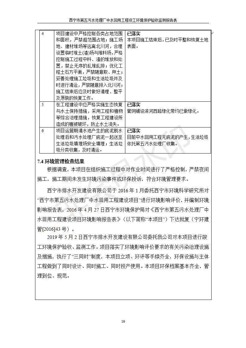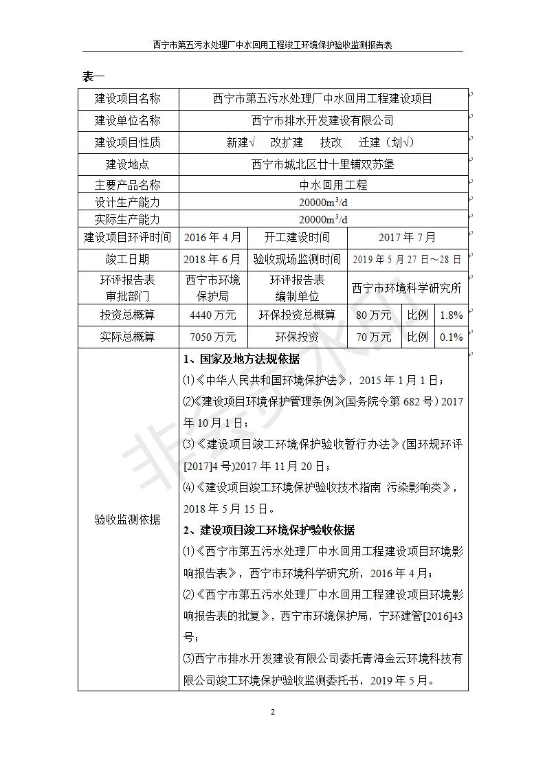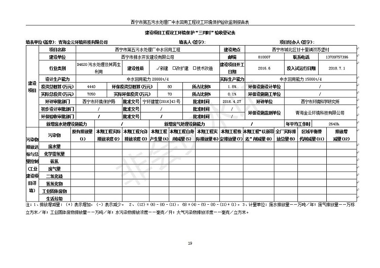 西寧市第五污水處理廠中水回用工程建設項目竣工環(huán)境保護驗收監(jiān)測報告表公示發(fā)布日期:(2019-7-10) 點擊次數(shù):2468 |
