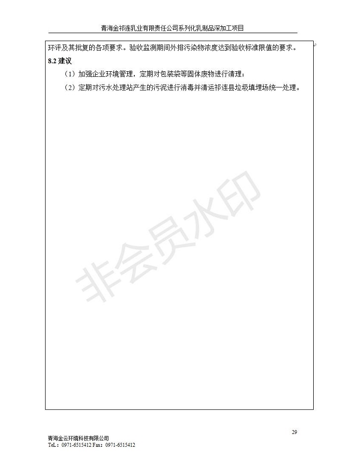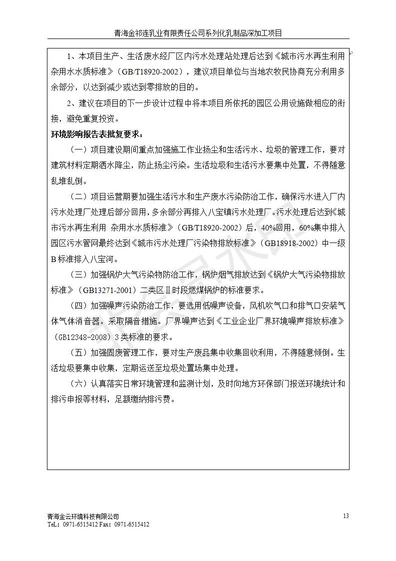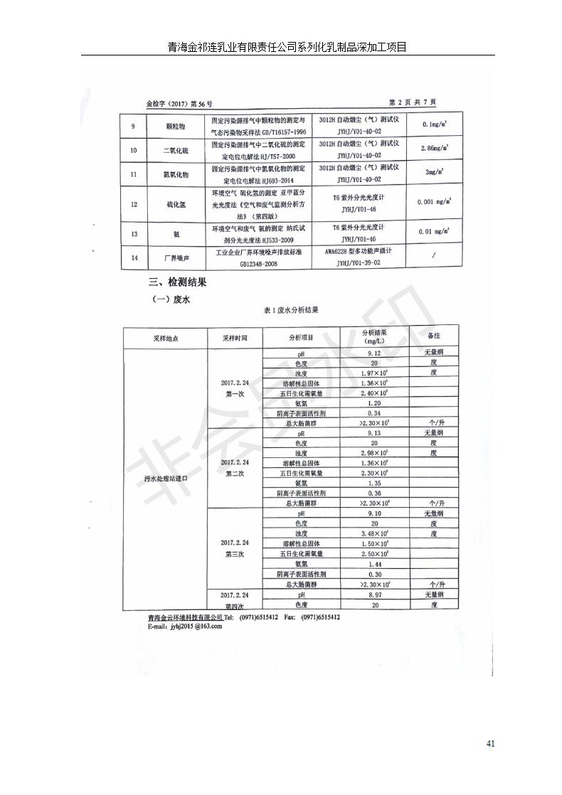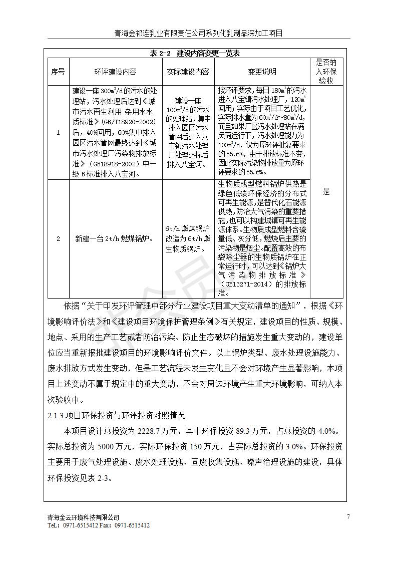 根據(jù)中華人民共和國國務(wù)院令第682號(hào)《國務(wù)院關(guān)于修改〈建設(shè)項(xiàng)目環(huán)境保護(hù)管理?xiàng)l例〉的決定》和《建設(shè)項(xiàng)目竣工環(huán)境保護(hù)驗(yàn)收暫行辦法》(國務(wù)院令682號(hào)),青海金祁連乳業(yè)有限責(zé)任公司系列化乳制品深加工項(xiàng)目(包括竣工環(huán)境保護(hù)驗(yàn)收監(jiān)測(cè)報(bào)告表和驗(yàn)收意見)公示如下。 一、項(xiàng)目名稱:青海金祁連乳業(yè)有限責(zé)任公司系列化乳制品深加工項(xiàng)目 二、地點(diǎn):海北藏族自治州祁連縣冰溝農(nóng)牧產(chǎn)業(yè)化生態(tài)園區(qū) 三、建設(shè)單位:青海金祁連乳業(yè)有限責(zé)任公司 四、建設(shè)內(nèi)容:本項(xiàng)目新征工業(yè)用地40畝,新建生產(chǎn)車間2200 m2、采用多聯(lián)跨鋼結(jié)構(gòu)廠房,跨度為24米,長(zhǎng)度為80米,柱間距為6米,標(biāo)高為4.8米。廠房?jī)?nèi)部根據(jù)產(chǎn)品生產(chǎn)工藝及工序要求分為不同的工作區(qū)域和車間辦公室。建設(shè)有保鮮冷庫800 m2、普通倉庫500m2、污水處理站房160 m2、鍋爐房和配電室159 m2、綜合辦公樓1200 m2、職工食堂和宿舍500 m2、其他輔助用房35 m2、蓄水池100 m2以及與土建工程相關(guān)聯(lián)的水、電、熱官網(wǎng)等輔助設(shè)施。 五、聯(lián)系人:張工 六、聯(lián)系電 話:0971-6515411 七、公示時(shí)間:二〇一九年七月十日至二〇一九年八月六日 公示期間,對(duì)上述公示內(nèi)容如有異議,請(qǐng)以書面形式反饋,個(gè)人須署真實(shí)姓名,單位須加蓋公章。