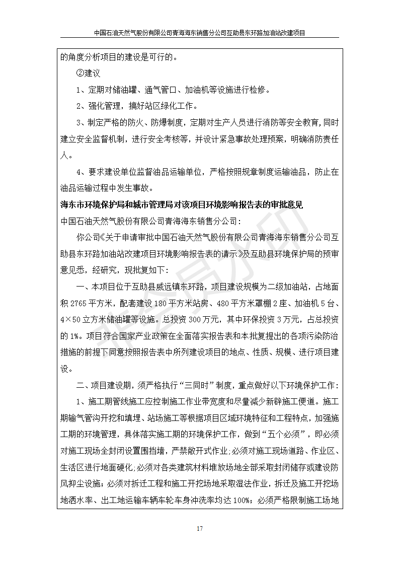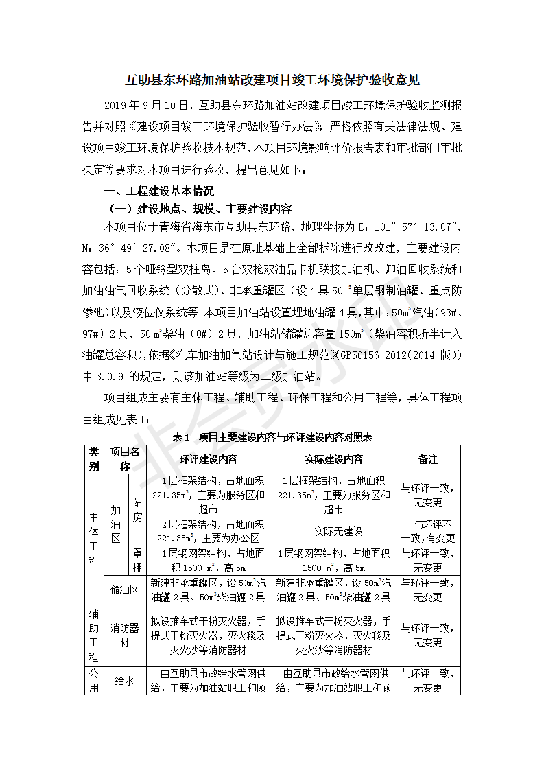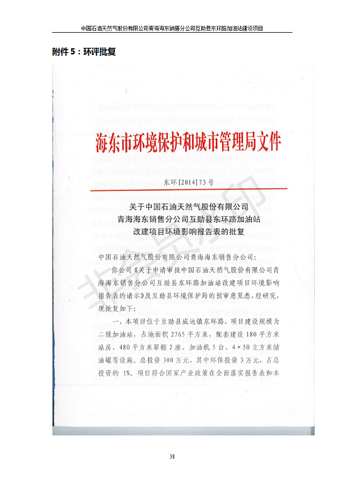 根據(jù)中華人民共和國(guó)國(guó)務(wù)院令第682號(hào)《國(guó)務(wù)院關(guān)于修改〈建設(shè)項(xiàng)目環(huán)境保護(hù)管理?xiàng)l例〉的決定》和《建設(shè)項(xiàng)目竣工環(huán)境保護(hù)驗(yàn)收暫行辦法》(國(guó)務(wù)院令682號(hào)),互助縣東環(huán)路加油站改建項(xiàng)目(包括竣工環(huán)境保護(hù)驗(yàn)收監(jiān)測(cè)報(bào)告表和驗(yàn)收意見(jiàn))公示如下。 一、項(xiàng)目名稱:互助縣東環(huán)路加油站改建項(xiàng)目 二、地點(diǎn):青海省海東市互助縣東環(huán)路 六、聯(lián)系電話:0971-6515411 七、公示時(shí)間:二〇一九年九月二十七日至二〇一九年十月二十九日 公示期間,對(duì)上述公示內(nèi)容如有異議,請(qǐng)以書面形式反饋,個(gè)人須署真實(shí)姓名,單位須加蓋公章。
