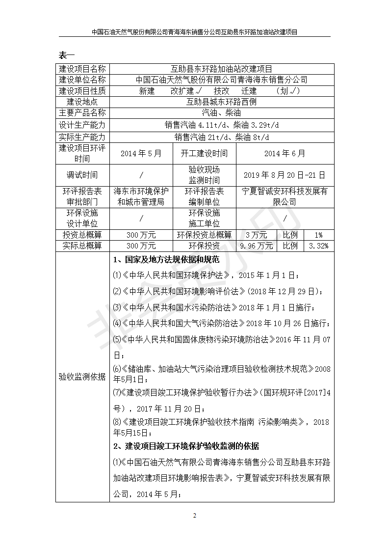 | 上一篇:互助縣東和加油站原址擴(kuò)建項(xiàng)目 竣工環(huán)境保護(hù)驗(yàn)收監(jiān)測(cè)報(bào)告表公示 | 下一篇:互助縣沙塘川加油站建設(shè)項(xiàng)目竣工環(huán)境保護(hù)驗(yàn)收監(jiān)測(cè)報(bào)告表 |