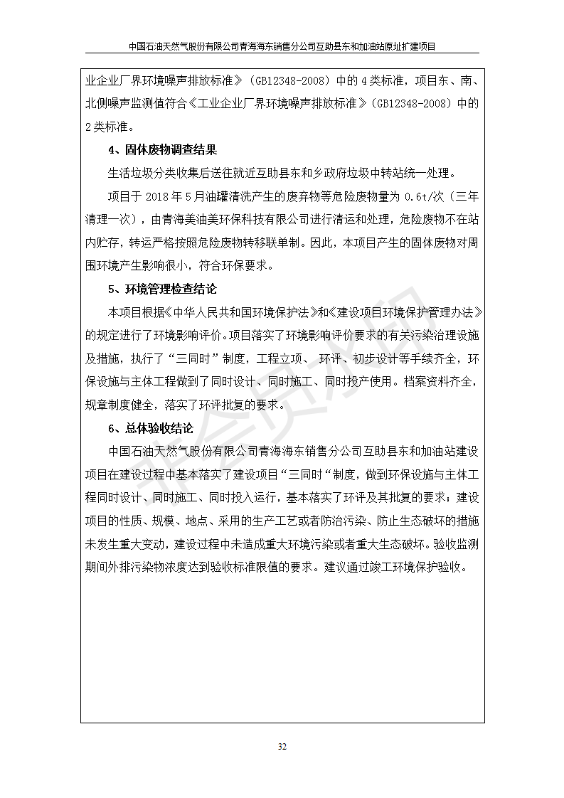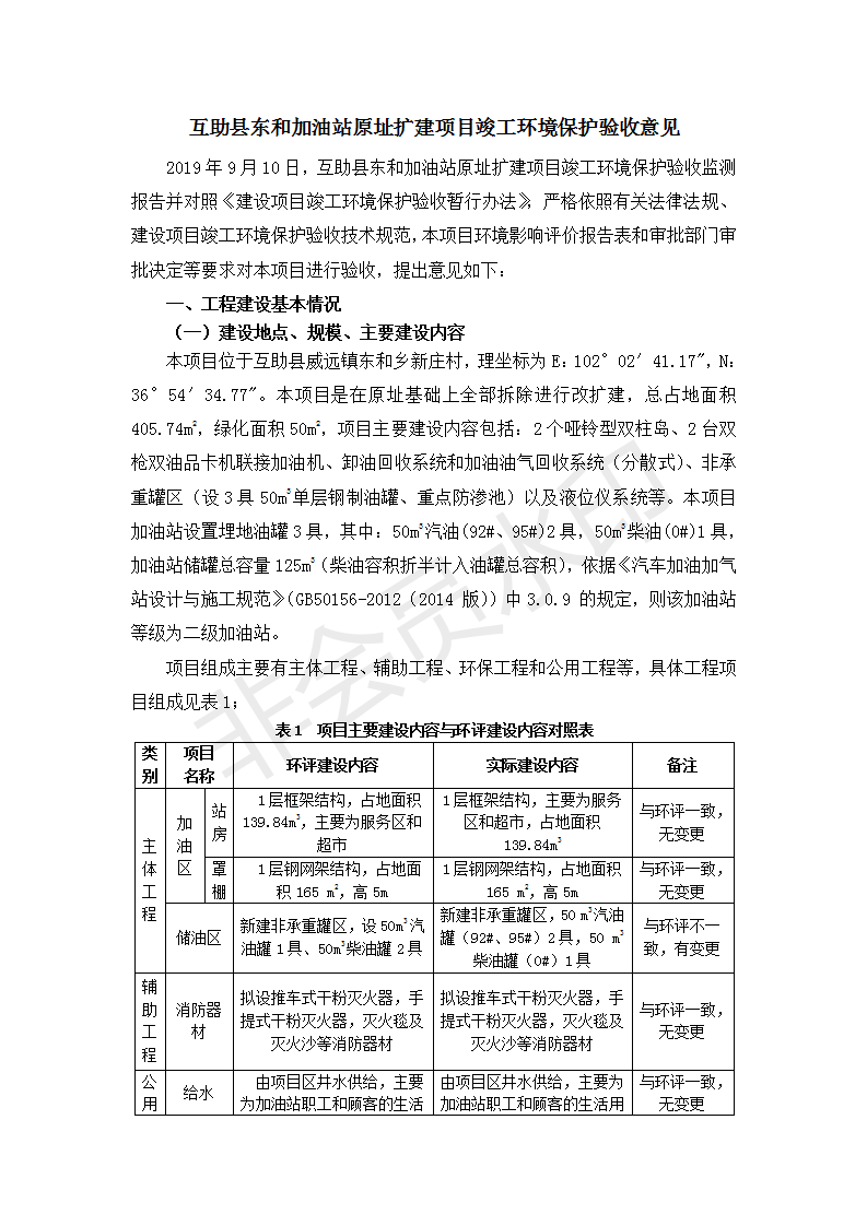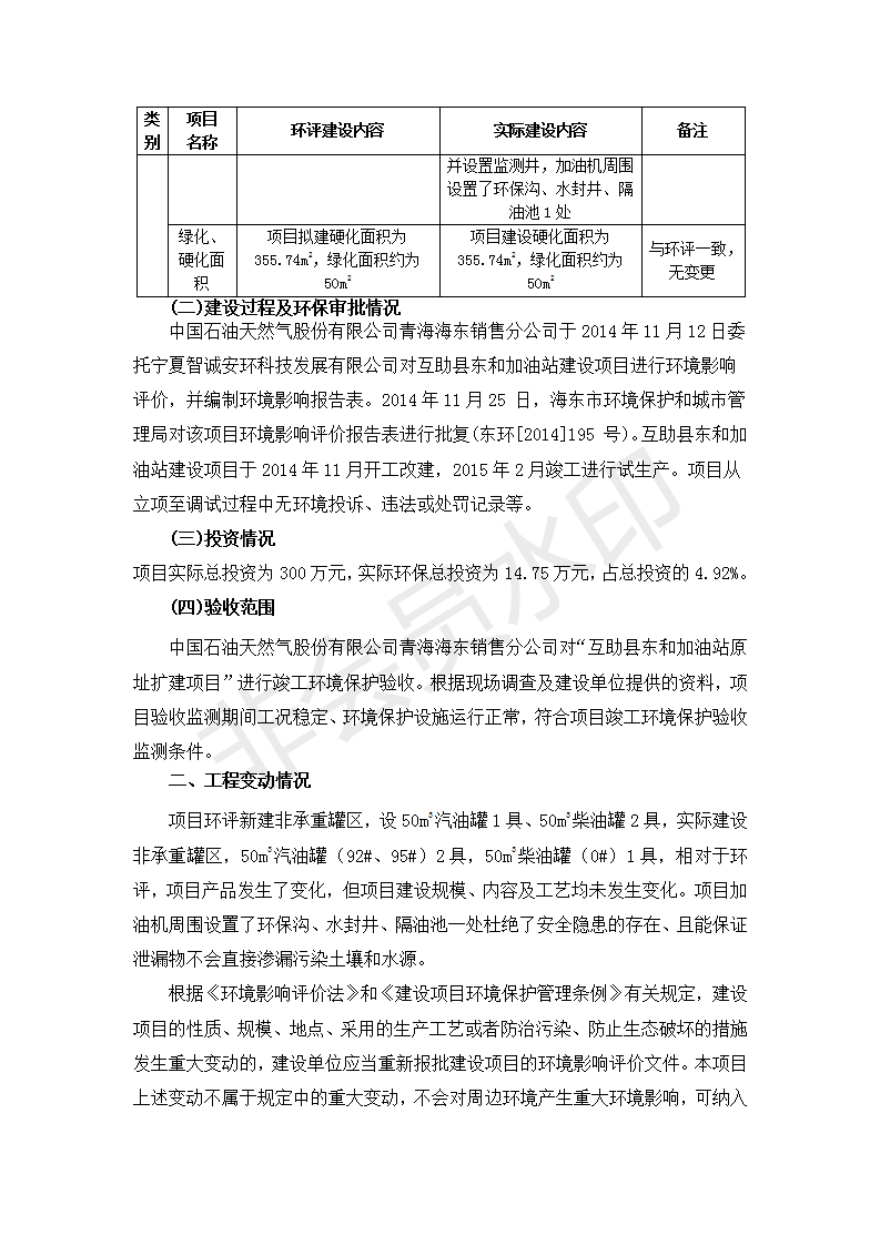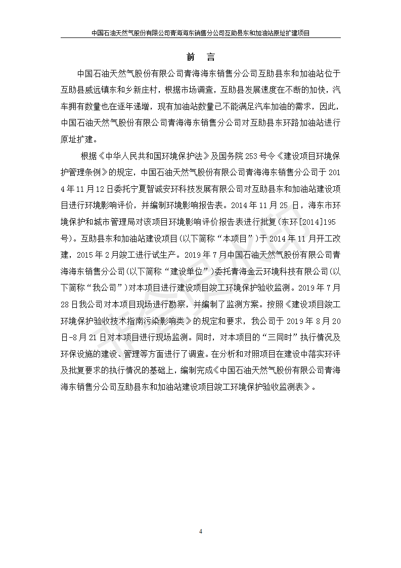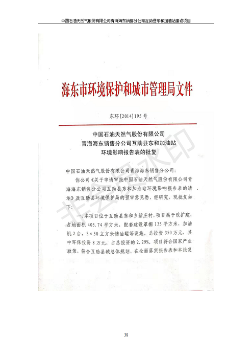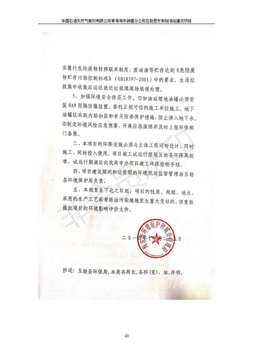 根據(jù)中華人民共和國國務(wù)院令第682號《國務(wù)院關(guān)于修改〈建設(shè)項目環(huán)境保護管理條例〉的決定》和《建設(shè)項目竣工環(huán)境保護驗收暫行辦法》(國務(wù)院令682號),互助縣東和加油站原址擴建項目(包括竣工環(huán)境保護驗收監(jiān)測報告表和驗收意見)公示如下。 一、項目名稱:互助縣東和加油站原址擴建項目 二、地點:互助縣威遠鎮(zhèn)東和鄉(xiāng)新莊村 六、聯(lián)系電話:0971-6515411 七、公示時間:二〇一九年九月二十七日至二〇一九年十月二十九日 公示期間,對上述公示內(nèi)容如有異議,請以書面形式反饋,個人須署真實姓名,單位須加蓋公章。