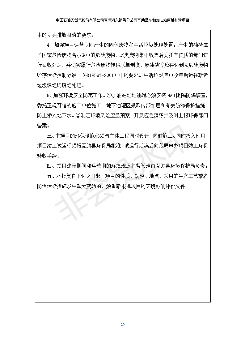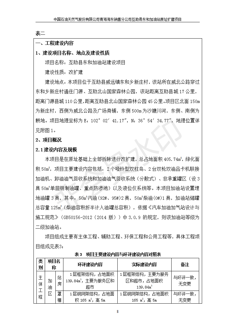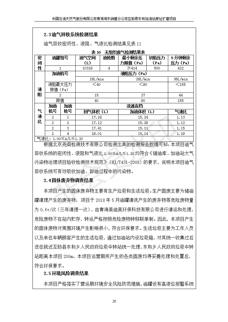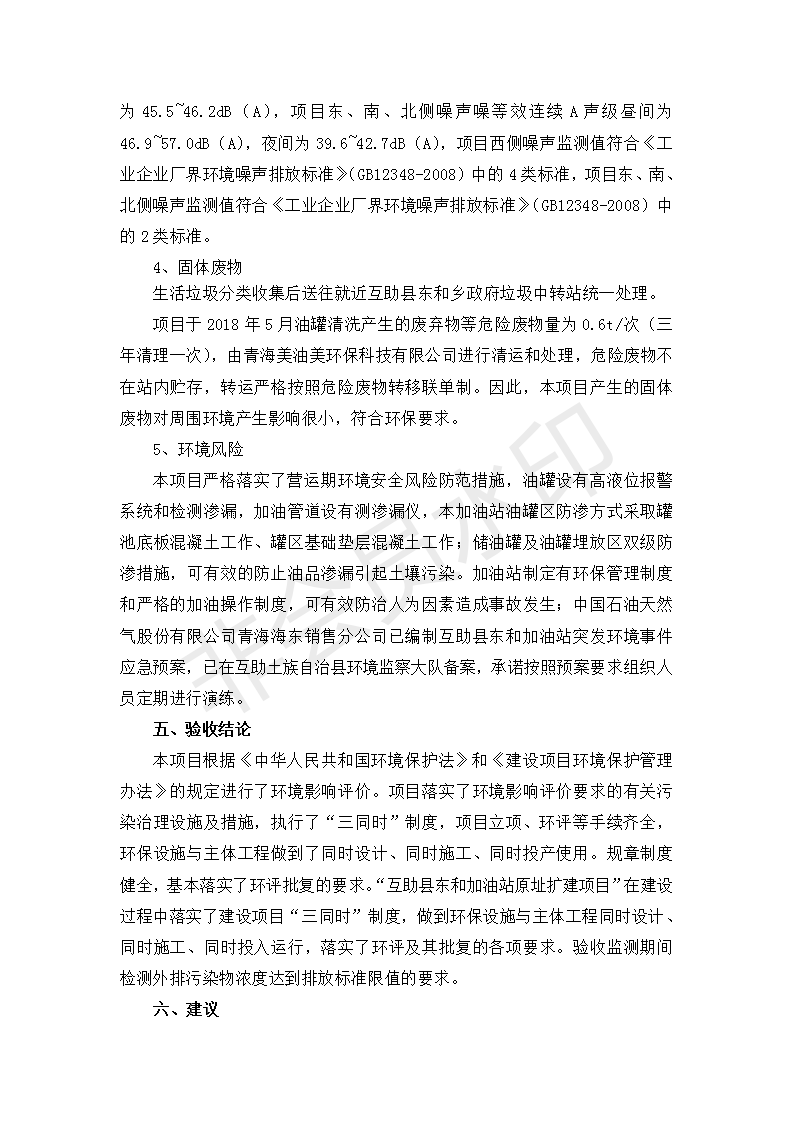 根據(jù)中華人民共和國國務(wù)院令第682號《國務(wù)院關(guān)于修改〈建設(shè)項目環(huán)境保護管理條例〉的決定》和《建設(shè)項目竣工環(huán)境保護驗收暫行辦法》(國務(wù)院令682號),互助縣東和加油站原址擴建項目(包括竣工環(huán)境保護驗收監(jiān)測報告表和驗收意見)公示如下。 一、項目名稱:互助縣東和加油站原址擴建項目 二、地點:互助縣威遠鎮(zhèn)東和鄉(xiāng)新莊村 六、聯(lián)系電話:0971-6515411 七、公示時間:二〇一九年九月二十七日至二〇一九年十月二十九日 公示期間,對上述公示內(nèi)容如有異議,請以書面形式反饋,個人須署真實姓名,單位須加蓋公章。