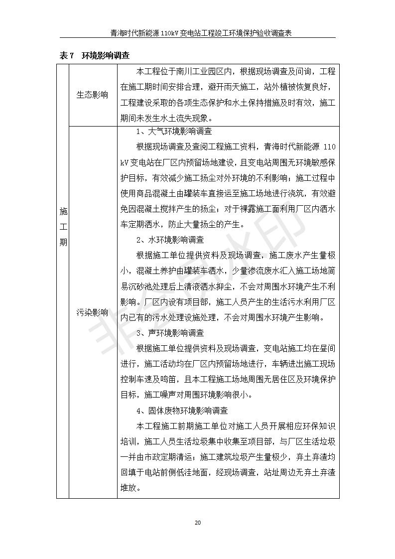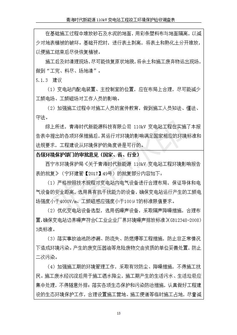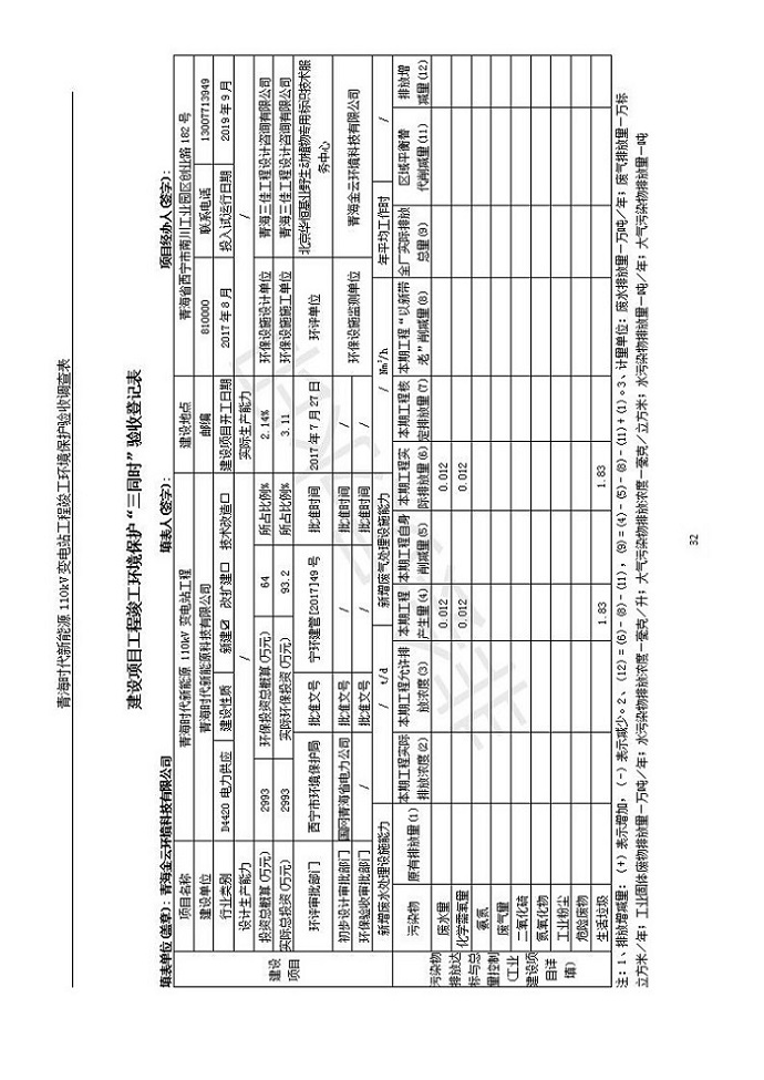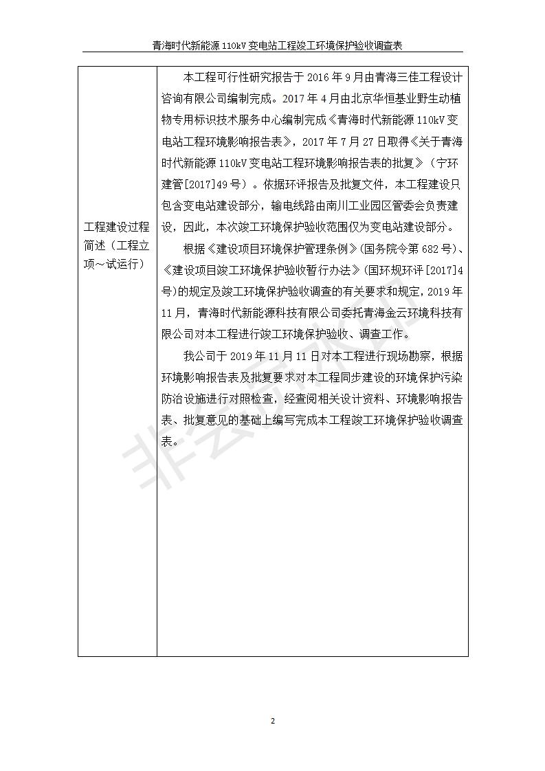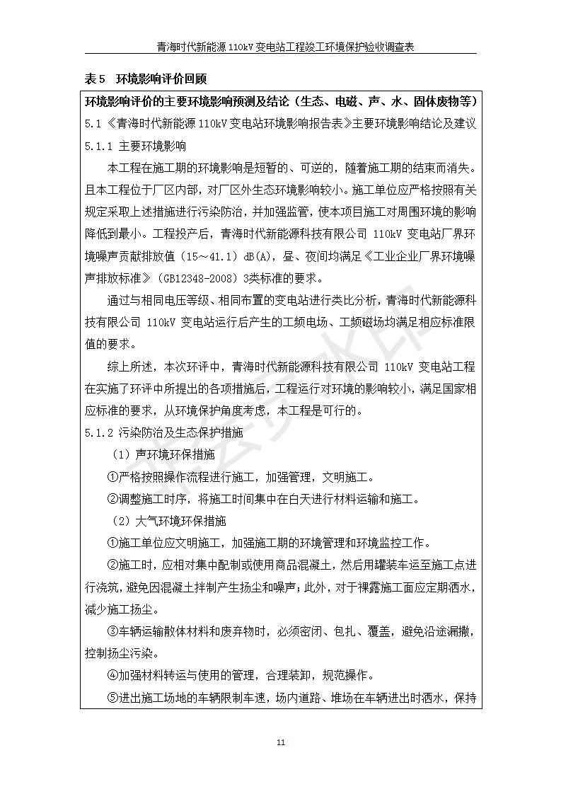 青海時(shí)代新能源110kV變電站工程竣工環(huán)境保護(hù)驗(yàn)收調(diào)查表公示發(fā)布日期:(2020-1-14) 點(diǎn)擊次數(shù):2836 |