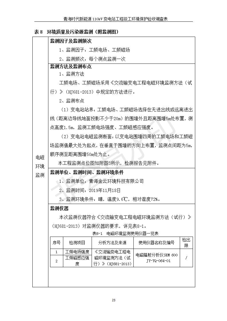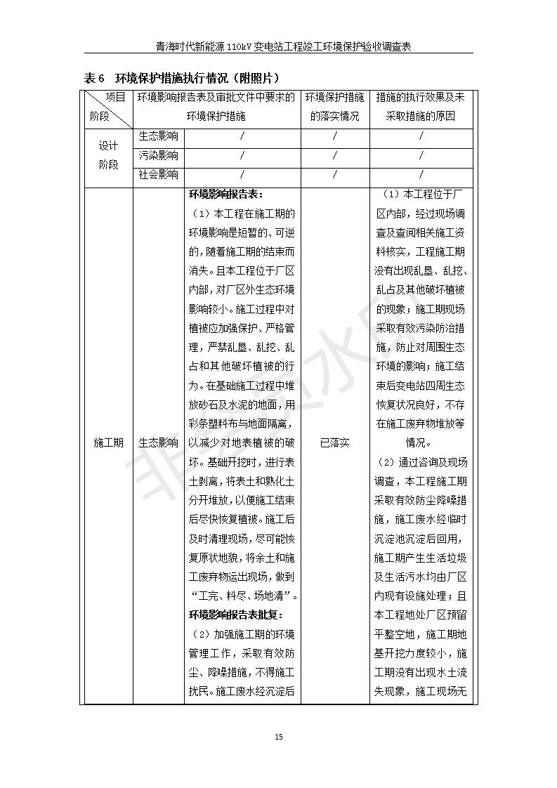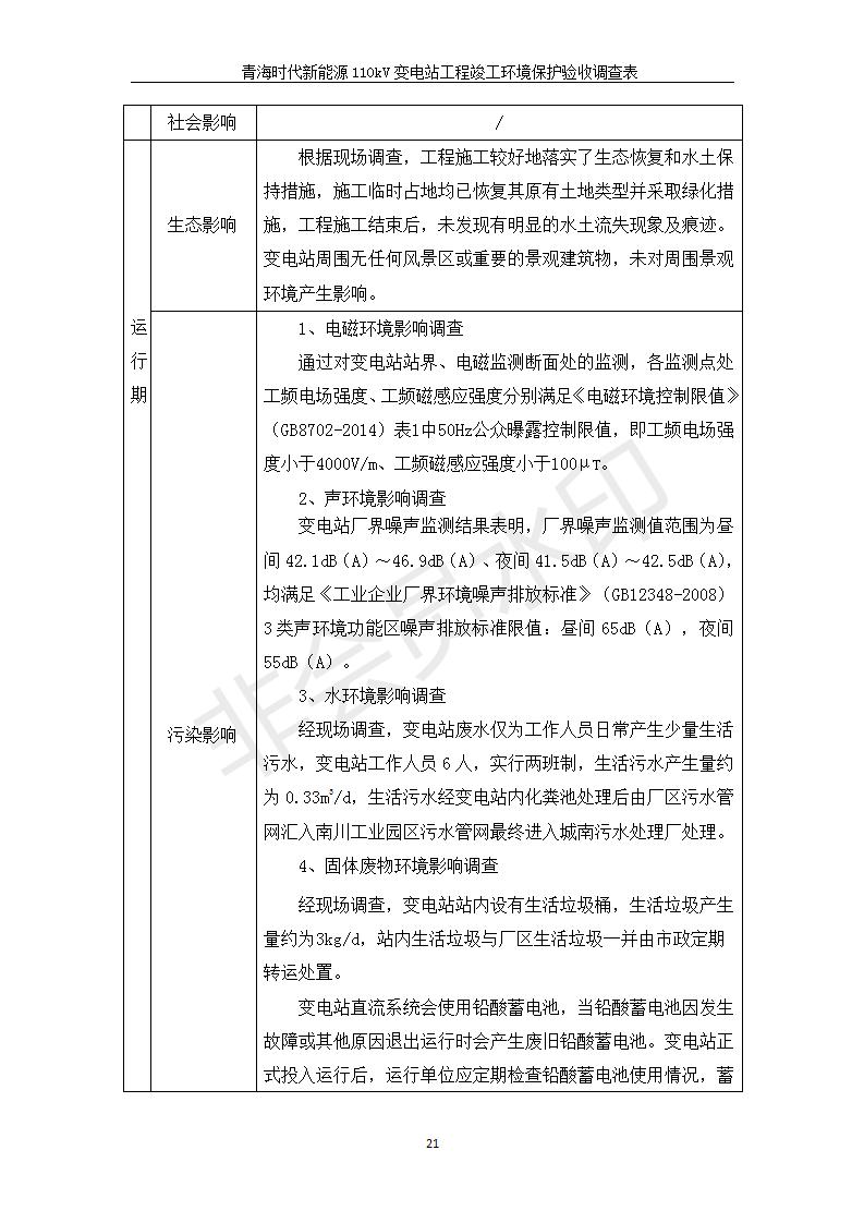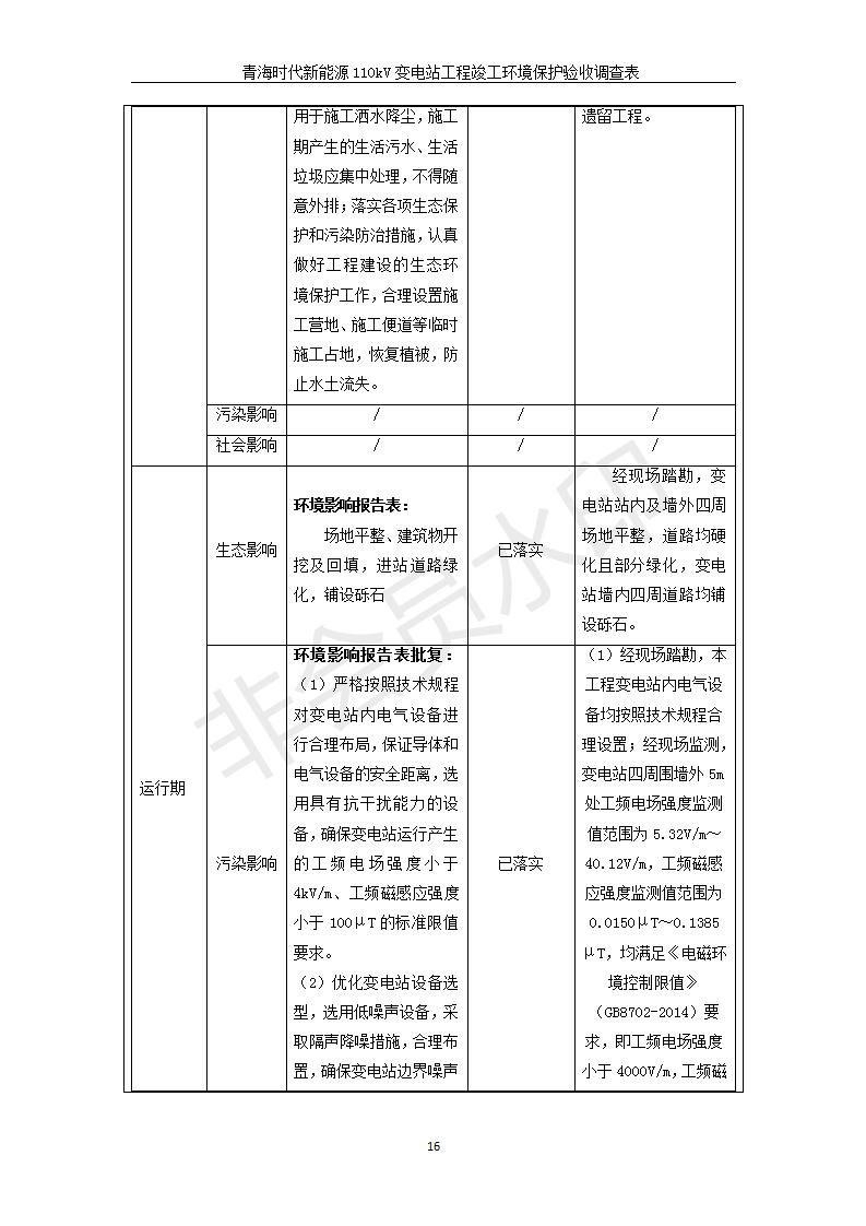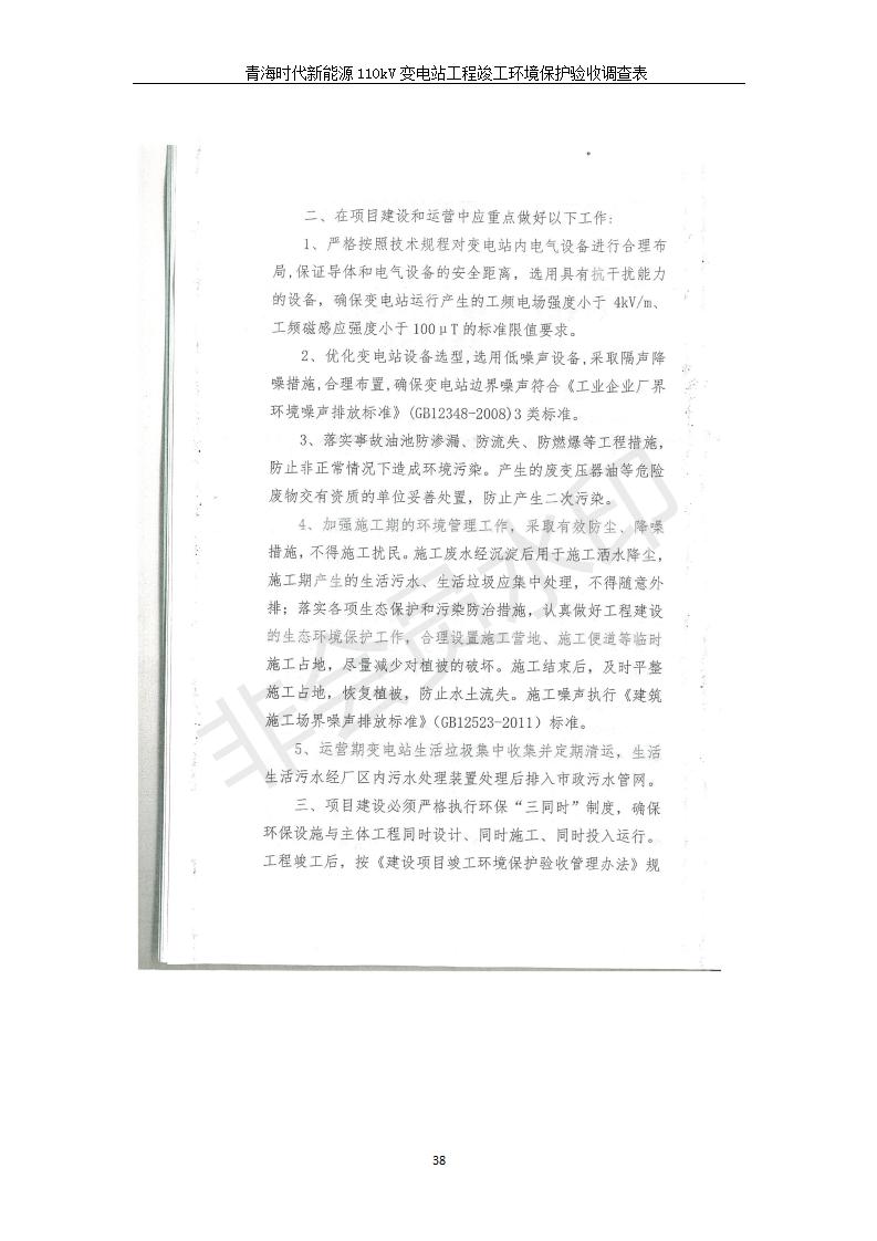 青海時(shí)代新能源110kV變電站工程竣工環(huán)境保護(hù)驗(yàn)收調(diào)查表公示發(fā)布日期:(2020-1-14) 點(diǎn)擊次數(shù):2836 |