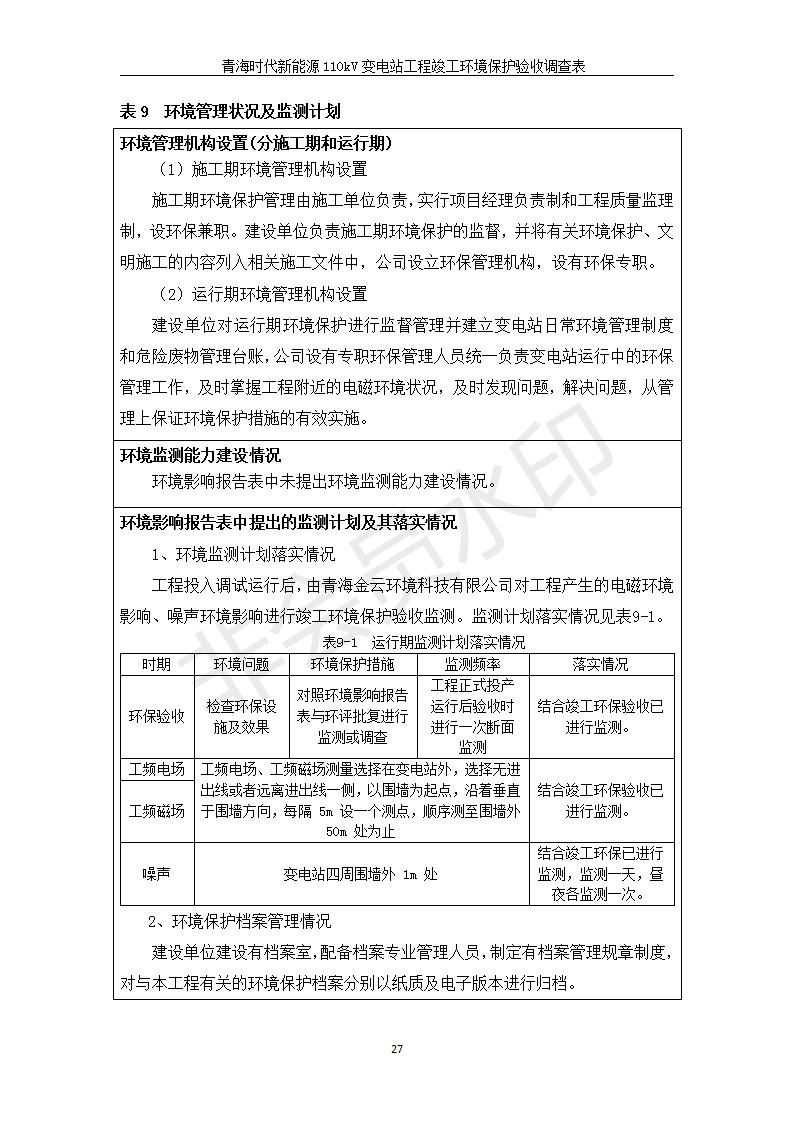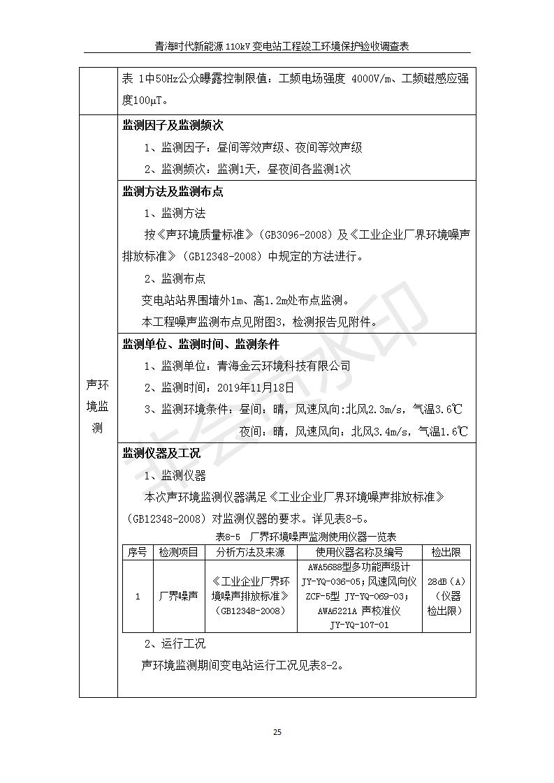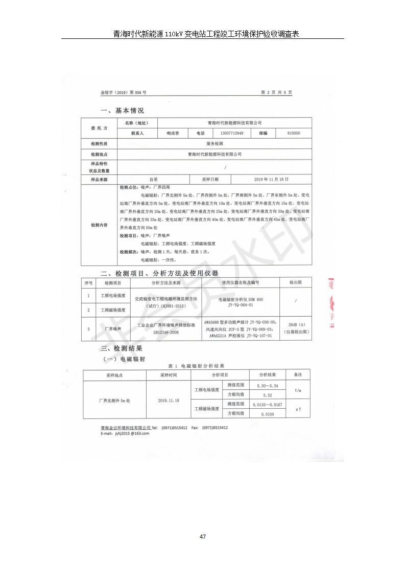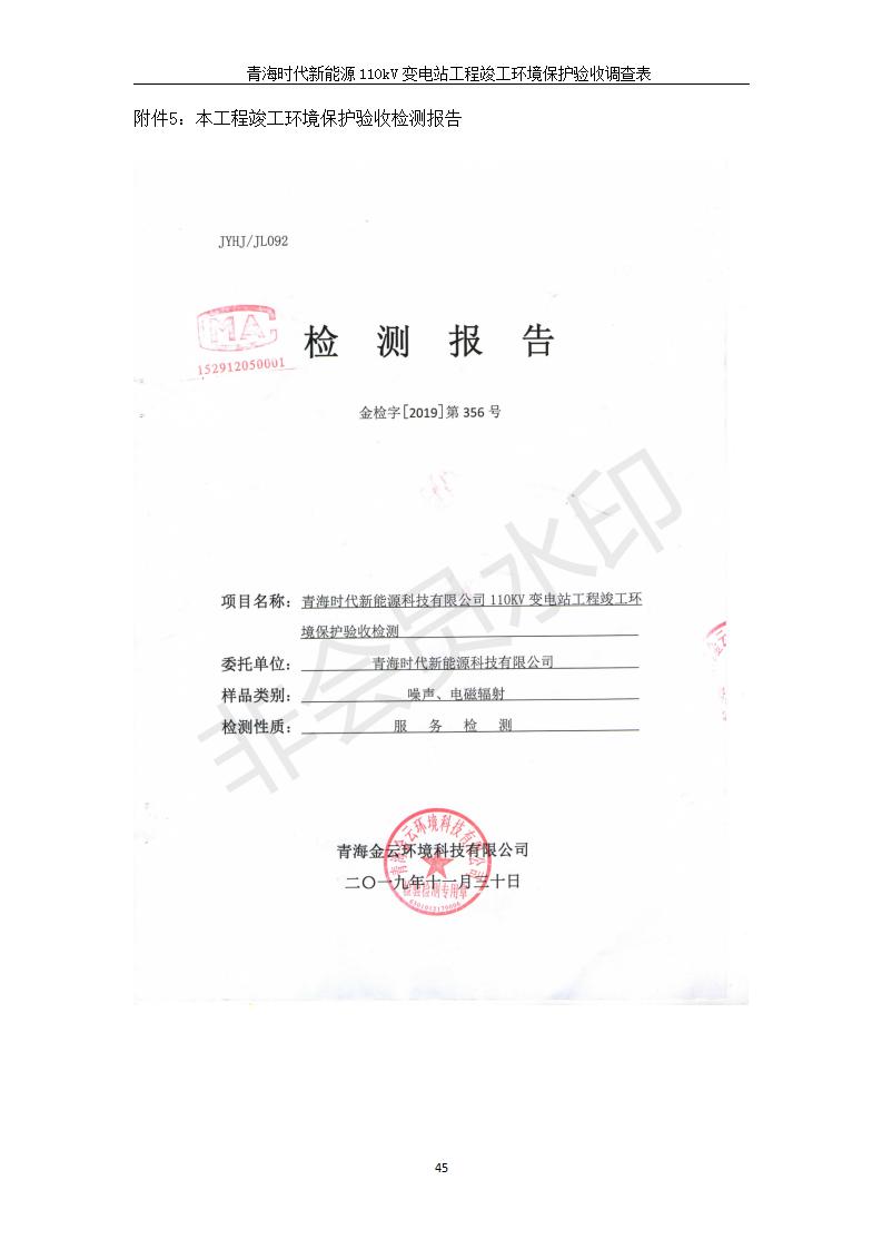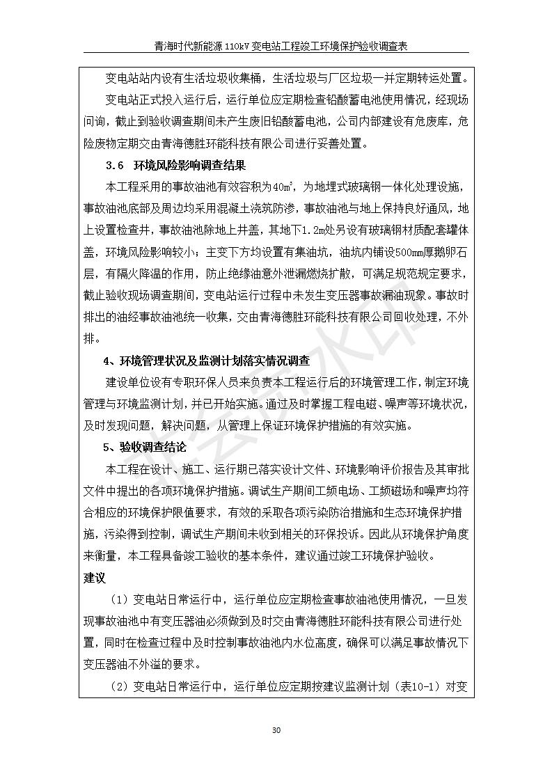 青海時(shí)代新能源110kV變電站工程竣工環(huán)境保護(hù)驗(yàn)收調(diào)查表公示發(fā)布日期:(2020-1-14) 點(diǎn)擊次數(shù):2836 |
