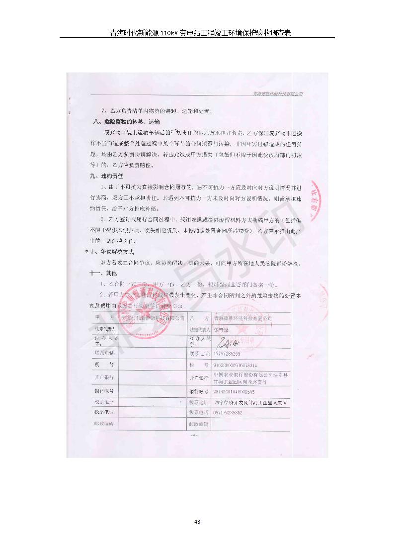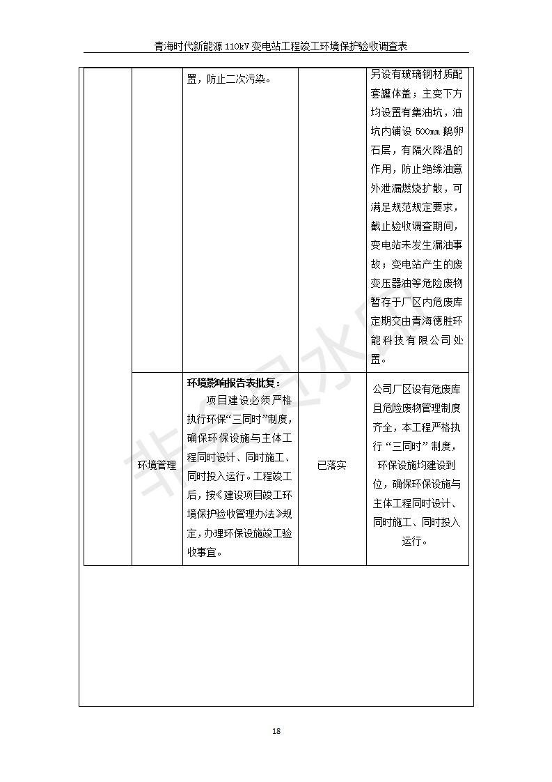 根據(jù)中華人民共和國(guó)國(guó)務(wù)院令第682號(hào)《國(guó)務(wù)院關(guān)于修改〈建設(shè)項(xiàng)目環(huán)境保護(hù)管理?xiàng)l例〉的決定》和《建設(shè)項(xiàng)目竣工環(huán)境保護(hù)驗(yàn)收暫行辦法》(國(guó)務(wù)院令682號(hào)),青海時(shí)代新能源110kV變電站工程(包括竣工環(huán)境保護(hù)驗(yàn)收調(diào)查表和驗(yàn)收意見)公示如下。 一、項(xiàng)目名稱:青海時(shí)代新能源110kV變電站工程 二、地點(diǎn):青海省西寧市南川工業(yè)園區(qū)創(chuàng)業(yè)路182號(hào)青海時(shí)代新能源科技有限公司廠區(qū)內(nèi) 三、建設(shè)單位:青海時(shí)代新能源科技有限公司 四、建設(shè)內(nèi)容:青海時(shí)代新能源 110kV 變電站采用全戶內(nèi)布置方式,依據(jù)環(huán)評(píng)報(bào)告及批復(fù)文件,經(jīng)現(xiàn)場(chǎng)踏勘本工程建設(shè)只包含變電站建設(shè)部分,輸電線路由南川工業(yè)園區(qū)管委會(huì)負(fù)責(zé)建設(shè),輸電線路不屬于本次驗(yàn)收調(diào)查范圍。工程本期規(guī)模2×31.5MVA,電壓等級(jí)為110/10kV。變電站 110kV 出線間隔最終2回,本期建設(shè)出線間隔2回;10kV最終電纜出線8回,本期電纜出線6回。 五、聯(lián)系人:張工 六、聯(lián)系電話:0971-6515411 七、公示時(shí)間:二〇二〇年一月十四日至二〇二〇年二月十三日 公示期間,對(duì)上述公示內(nèi)容如有異議,請(qǐng)以書面形式反饋,個(gè)人須署真實(shí)姓名,單位須加蓋公章。