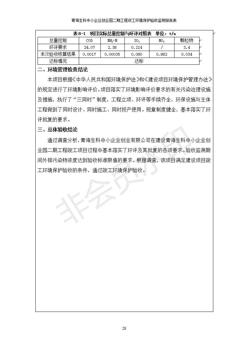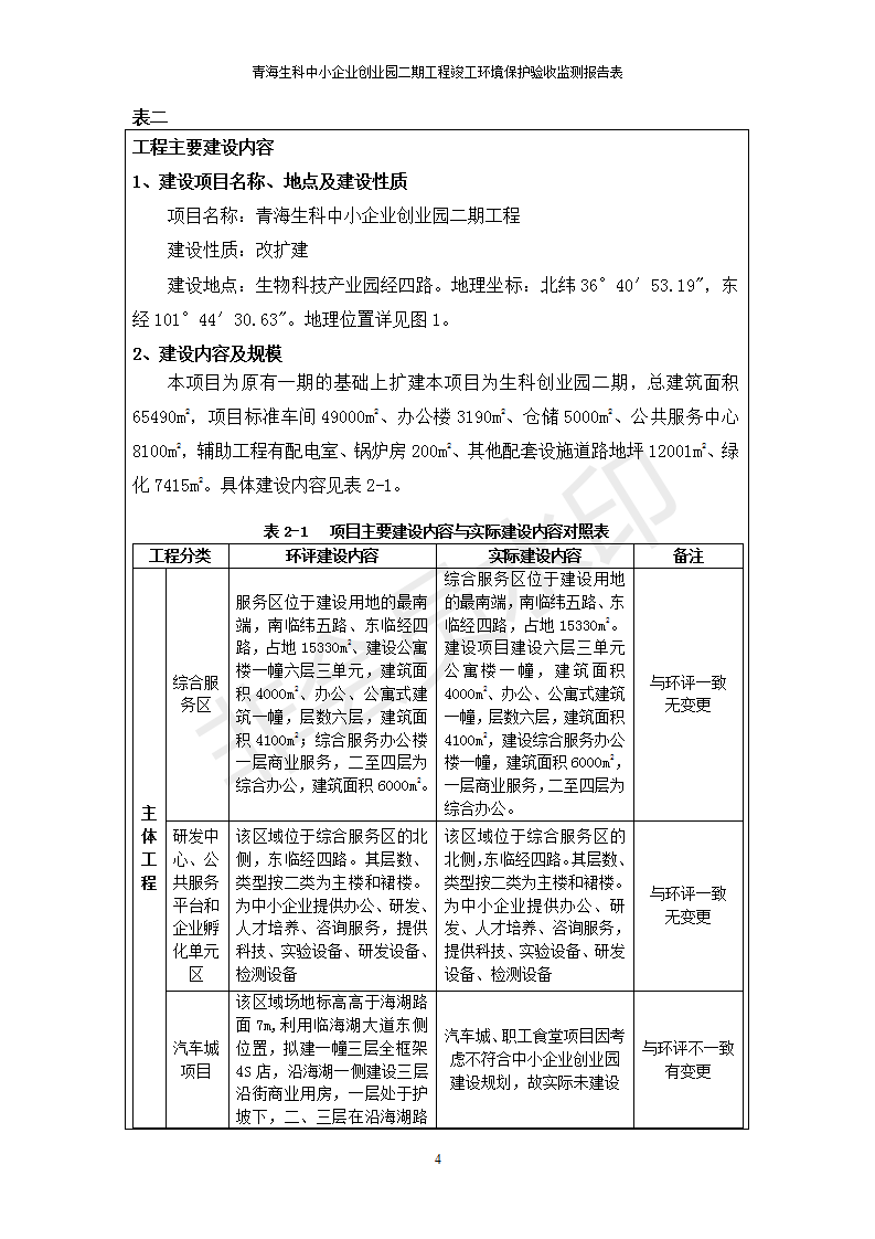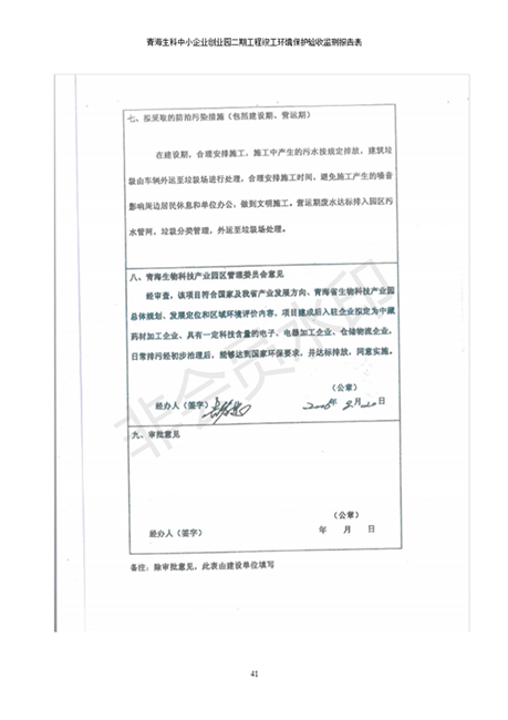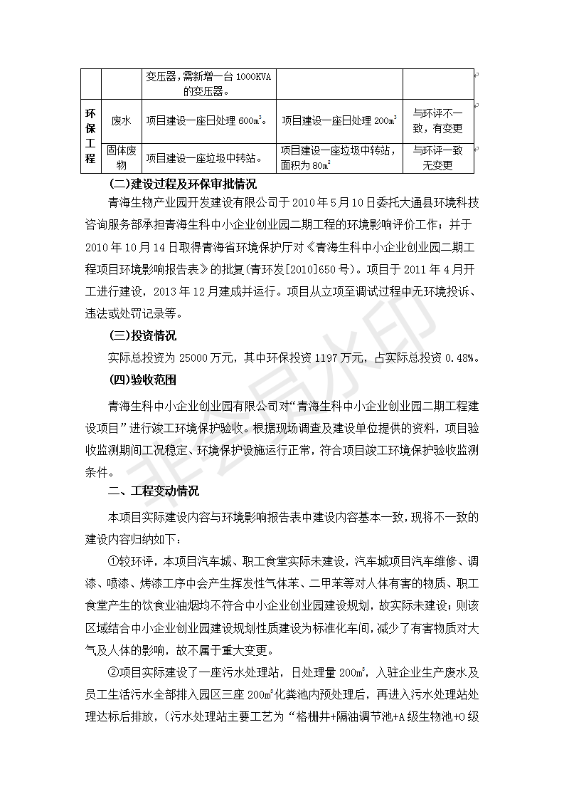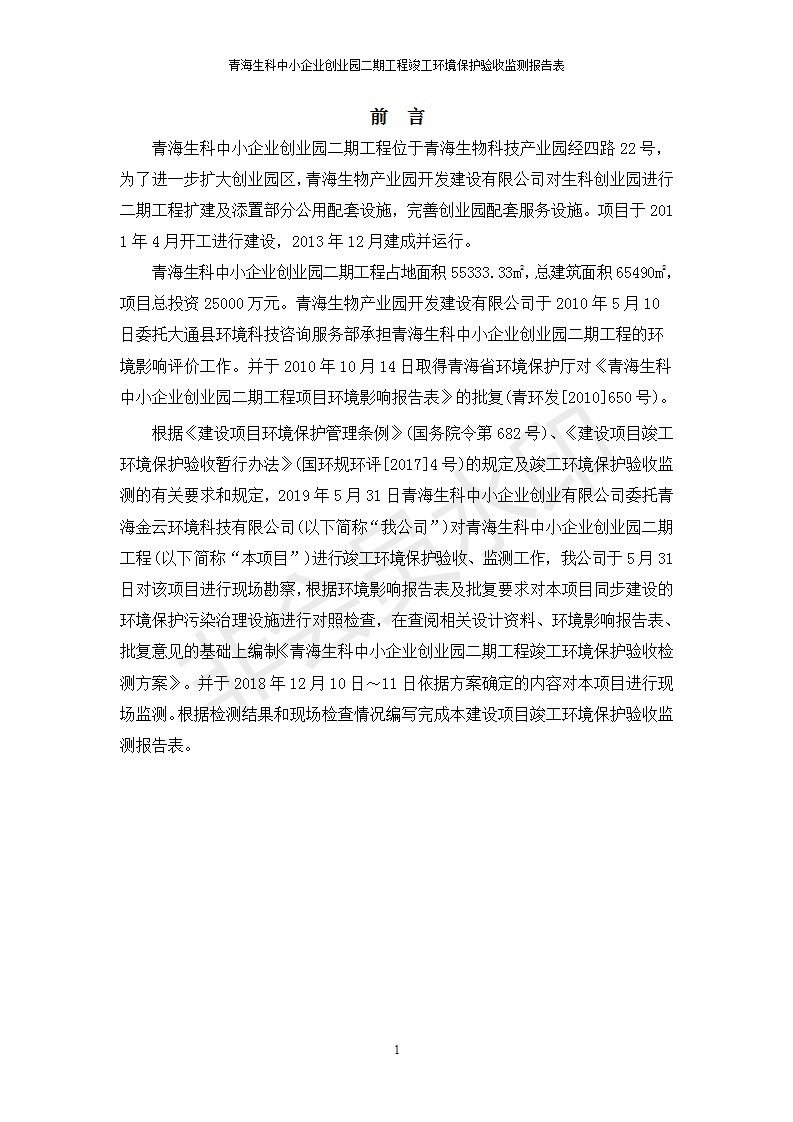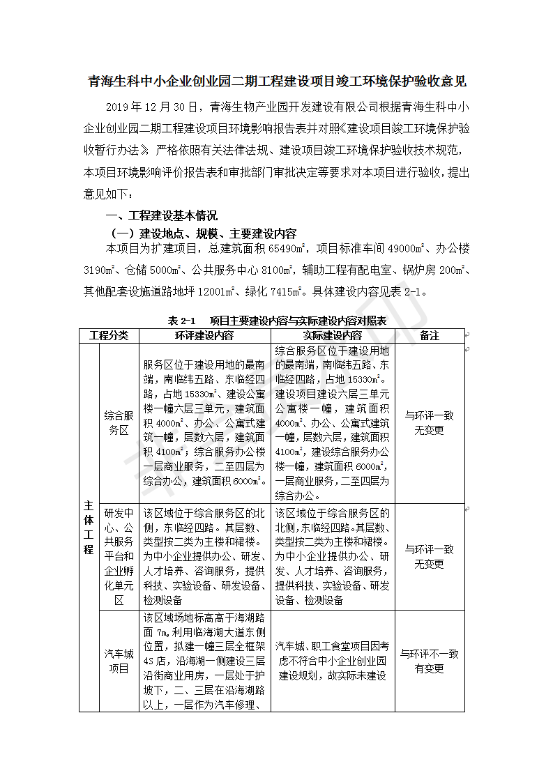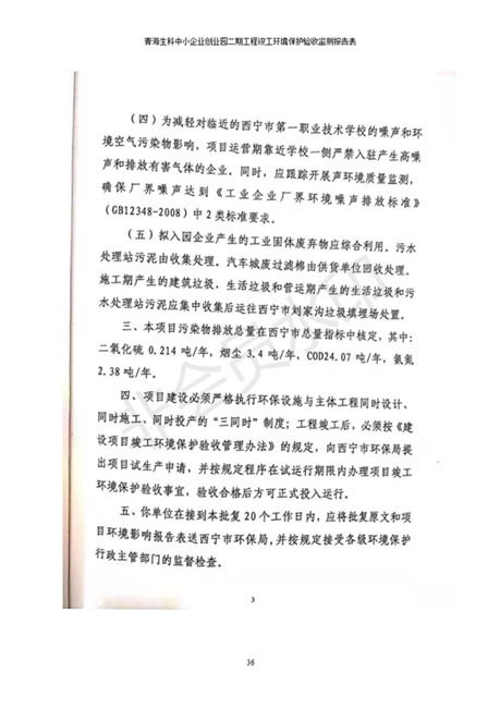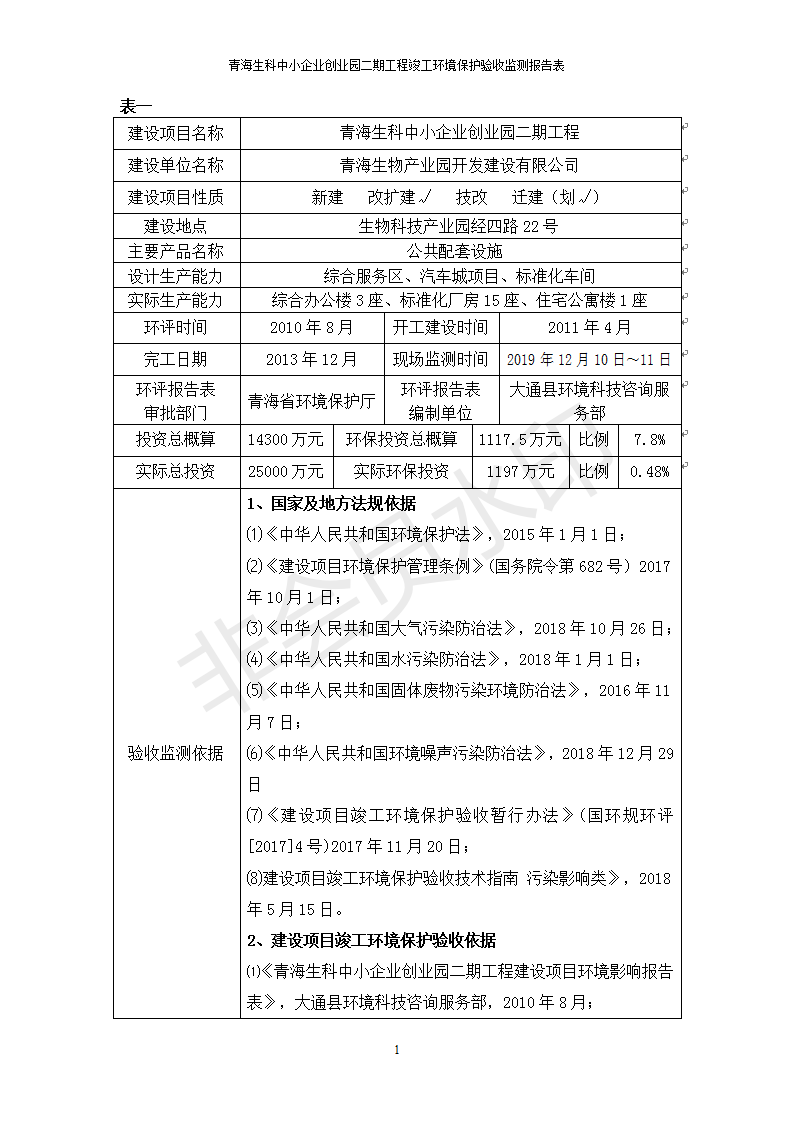 據(jù)中華人民共和國國務(wù)院令第682號《國務(wù)院關(guān)于修改〈建設(shè)項目環(huán)境保護(hù)管理條例〉的決定》和《建設(shè)項目竣工環(huán)境保護(hù)驗收暫行辦法》(國務(wù)院令682號),青海生科中小企業(yè)創(chuàng)業(yè)園二期工程建設(shè)項目(包括竣工環(huán)境保護(hù)驗收監(jiān)測報告表和驗收意見)公示如下。 一、項目名稱:青海生科中小企業(yè)創(chuàng)業(yè)園二期工程建設(shè)項目 二、地點:西寧市生物園區(qū)經(jīng)四路26號 五、聯(lián)系人:張憲周 六、聯(lián)系電話:13997290897 七、公示時間:二〇二〇年二月三日至二〇二〇年二月二十八日 公示期間,對上述公示內(nèi)容如有異議,請以書面形式反饋,個人須署真實姓名,單位須加蓋公章。