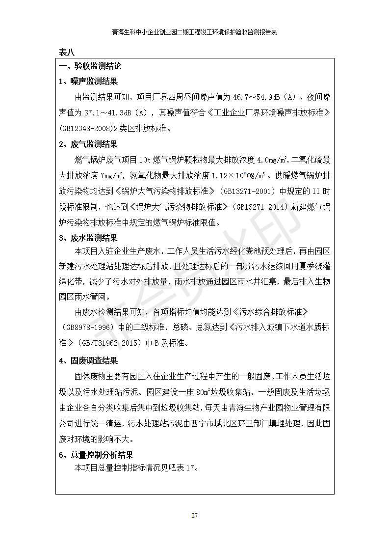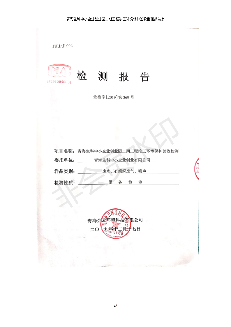 青海生科中小企業(yè)創(chuàng)業(yè)園二期工程建設(shè)項目竣工環(huán)境保護(hù)驗收檢測報告表公示發(fā)布日期:(2020-2-1) 點擊次數(shù):2445 |