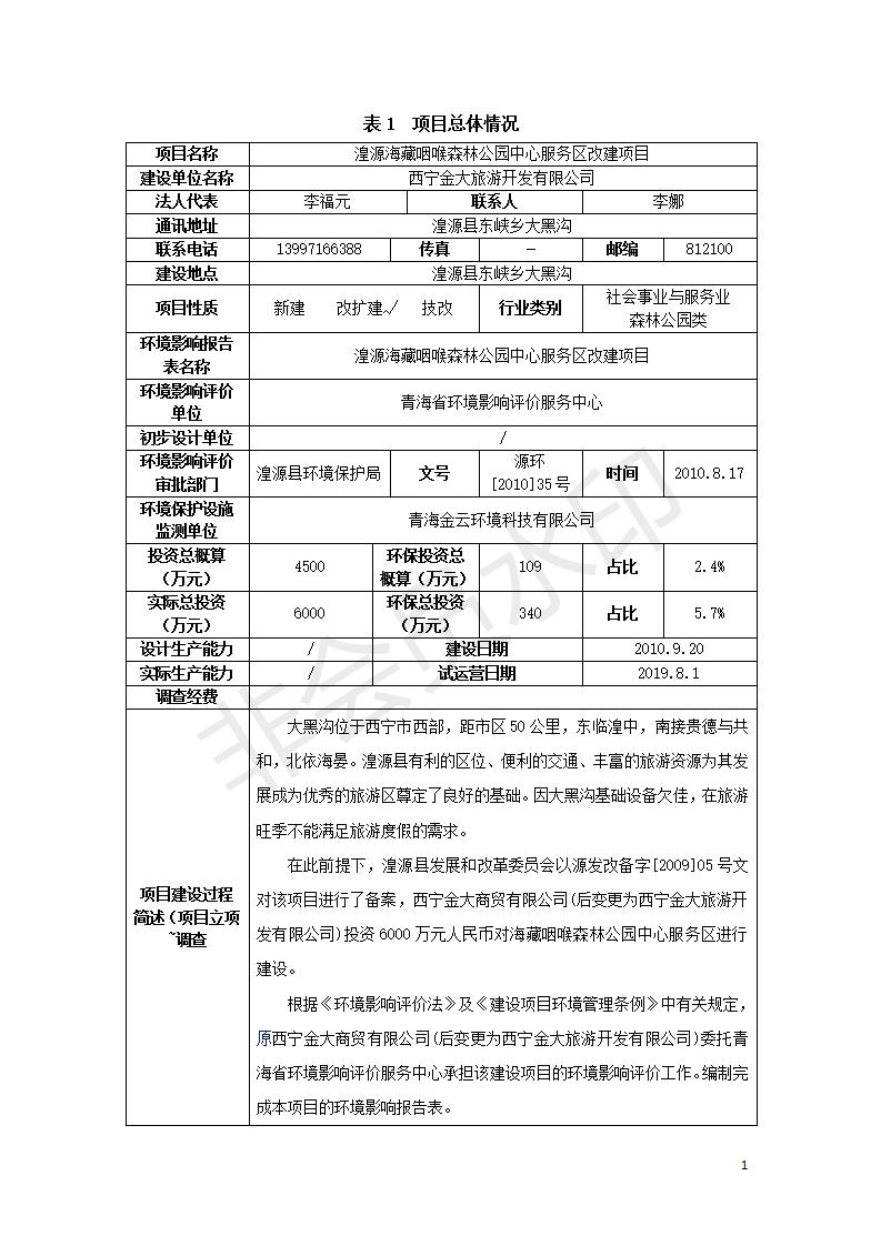湟源海藏咽喉森林公園中心服務(wù)區(qū)改建項(xiàng)目(階段性)竣工環(huán)境保護(hù)驗(yàn)收調(diào)查表發(fā)布日期:(2020-4-29) 點(diǎn)擊次數(shù):3179 |