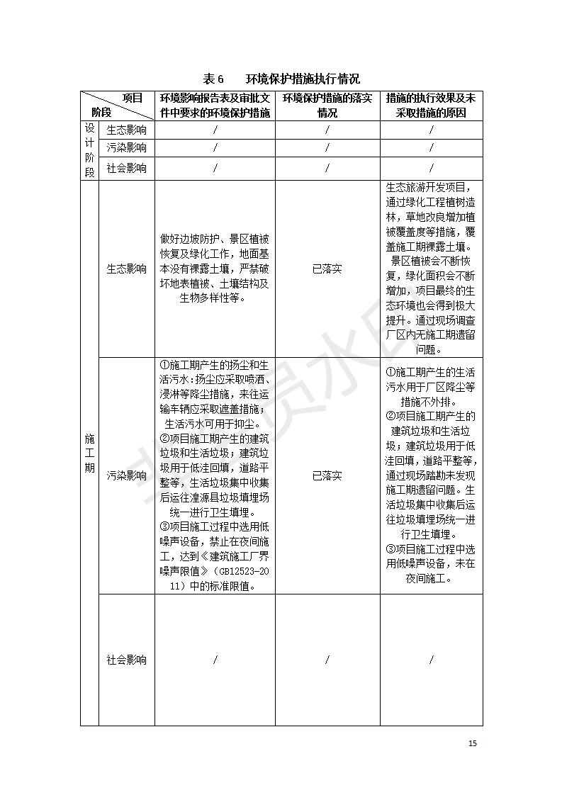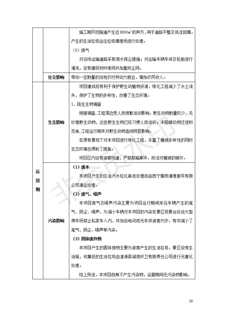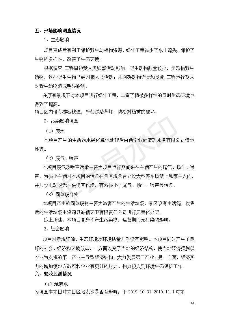 根據(jù)中華人民共和國(guó)國(guó)務(wù)院令第682號(hào)《國(guó)務(wù)院關(guān)于修改〈建設(shè)項(xiàng)目環(huán)境保護(hù)管理?xiàng)l例〉的決定》和《建設(shè)項(xiàng)目竣工環(huán)境保護(hù)驗(yàn)收暫行辦法》(國(guó)務(wù)院令682號(hào)),湟源海藏咽喉森林公園中心服務(wù)區(qū)改建項(xiàng)目(階段性),(包括竣工環(huán)境保護(hù)驗(yàn)收調(diào)查表和驗(yàn)收意見(jiàn))公示如下。 一、項(xiàng)目名稱:湟源海藏咽喉森林公園中心服務(wù)區(qū)改建項(xiàng)目(階段性) 竣工環(huán)境保護(hù)驗(yàn)收調(diào)查表 二、地點(diǎn):青海省湟源縣東峽鄉(xiāng)大黑溝 三、建設(shè)單位:西寧金大旅游開發(fā)有限公司 四、建設(shè)內(nèi)容:本次階段性驗(yàn)收以自然景觀為主,建設(shè)內(nèi)容為濱水景觀帶、觀景臺(tái)、景區(qū)道路及基礎(chǔ)設(shè)施。項(xiàng)目范圍從景區(qū)大門至中心位置,全長(zhǎng)4800m。 五、聯(lián)系人:張工 六、聯(lián)系電 話:0971-6515411 七、公示時(shí)間:二〇二〇年四月二十九日至二〇二〇年五月二十八日 公示期間,對(duì)上述公示內(nèi)容如有異議,請(qǐng)以書面形式反饋,個(gè)人須署真實(shí)姓名,單位須加蓋公章。